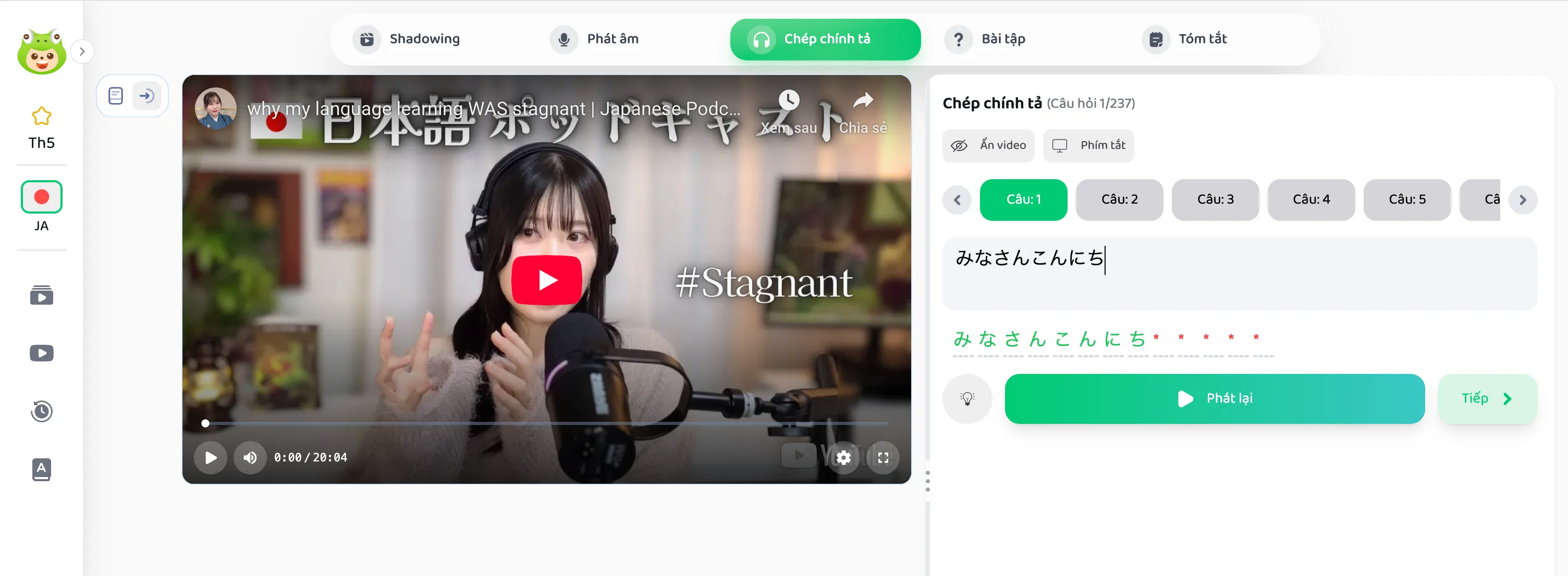 Ứng dụng giúp người học luyện phản xạ, phát âm và khả năng nghe hiểu thông qua việc lặp lại câu nói của người bản ngữ trong video.