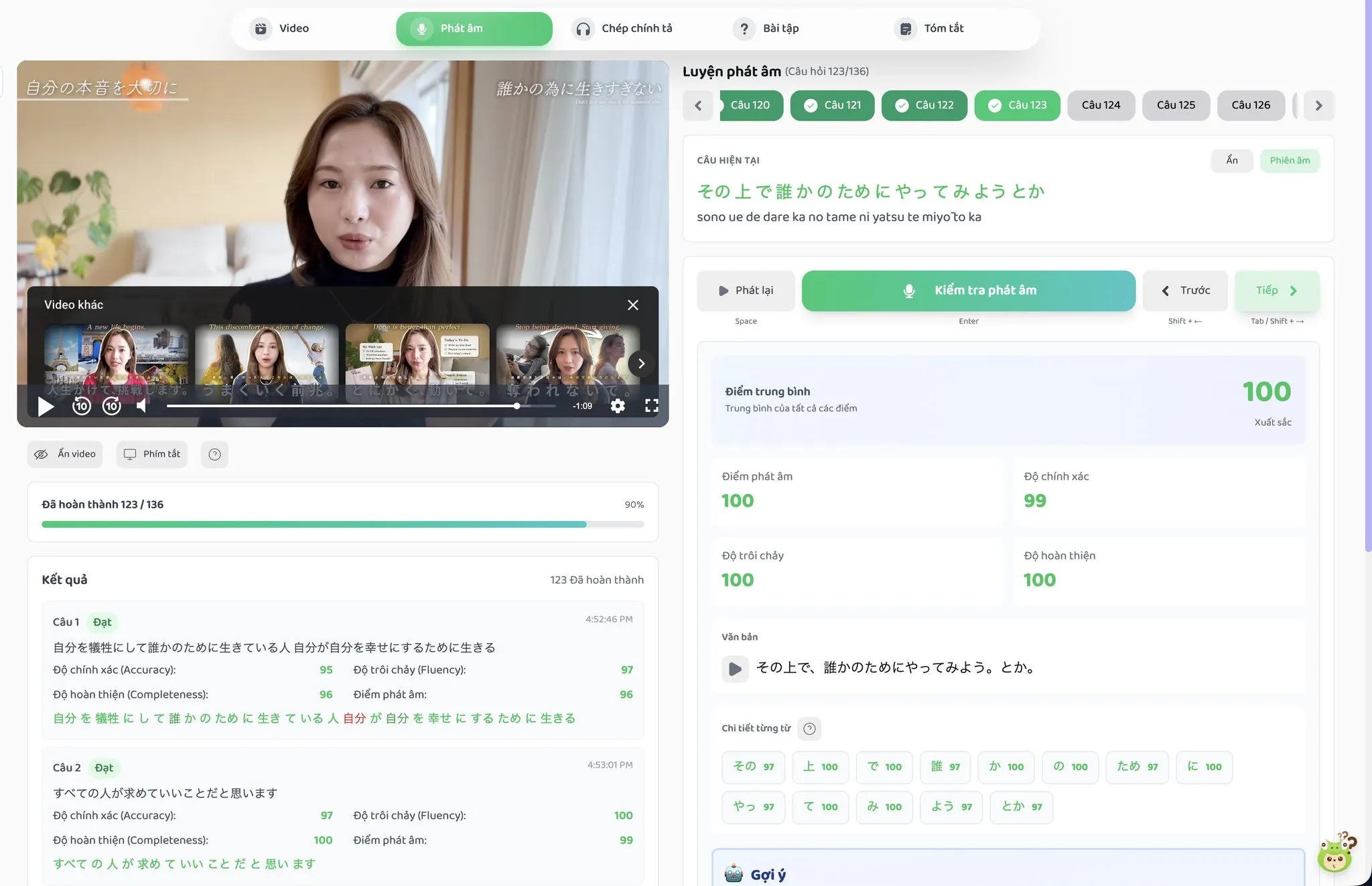 Điểm này giúp bạn nhanh chóng biết được mức độ phát âm tổng thể của mình.