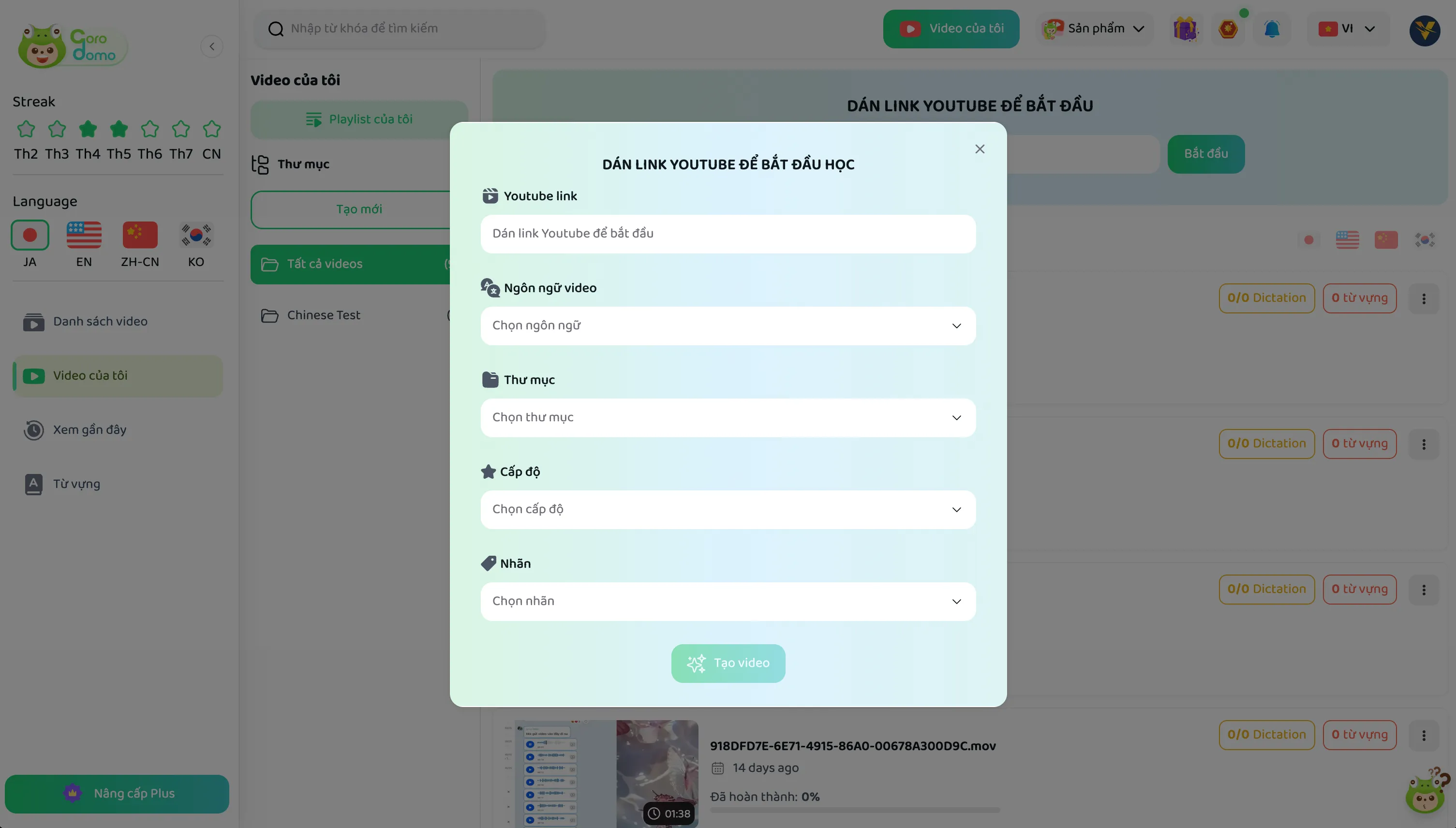 Corodomo cho phép người dùng tự thêm video vào hệ thống để học ngoại ngữ, giúp bạn học với bất kỳ nội dung nào mình yêu thích.