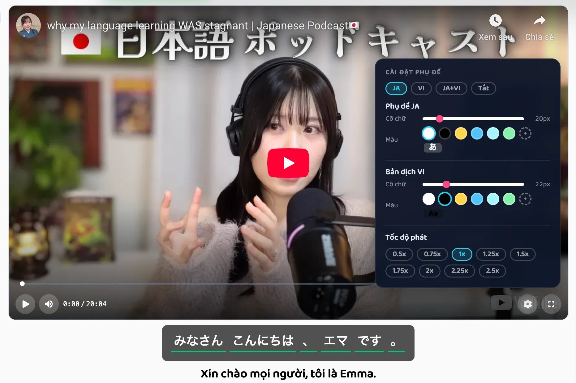 Điều này giúp biến bất kỳ video nào thành một bài học ngoại ngữ hoàn chỉnh.